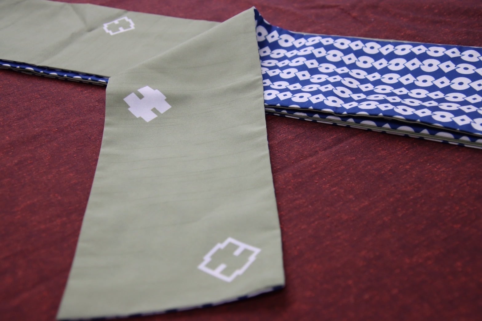 ポリ巻帯リバーシブル【新柄/柳茶色】× 【つなぎ柄/青色】