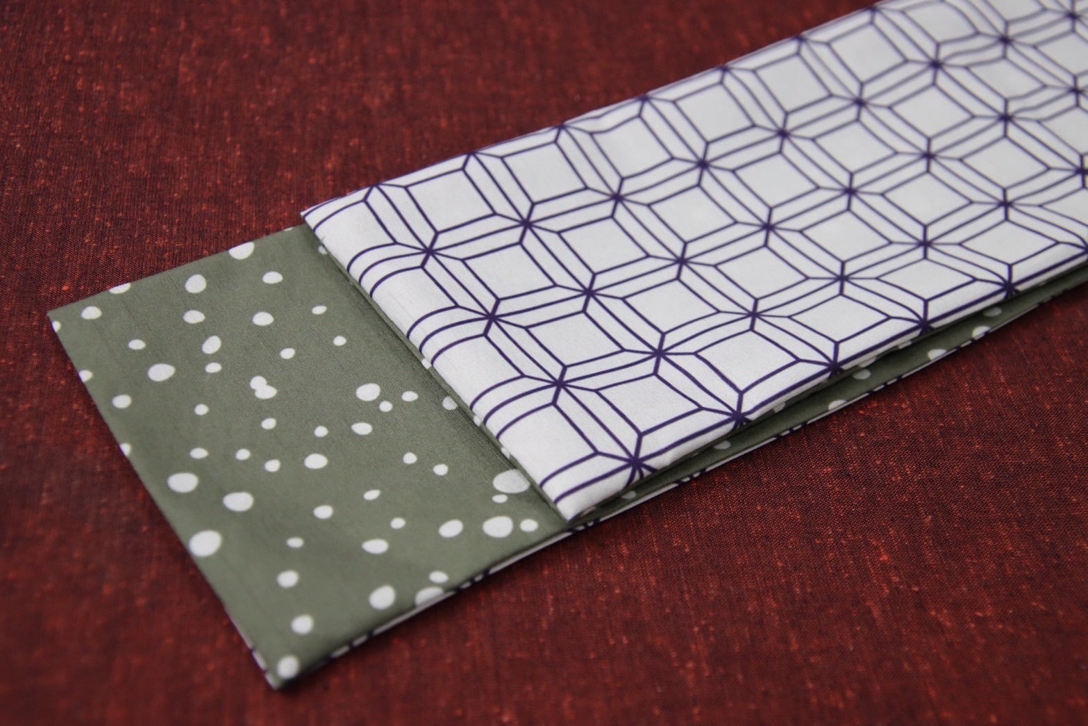 ポリ巻帯リバーシブル【大小雨霰柄/オリーブ色】× 【亀甲崩し柄/菫色】