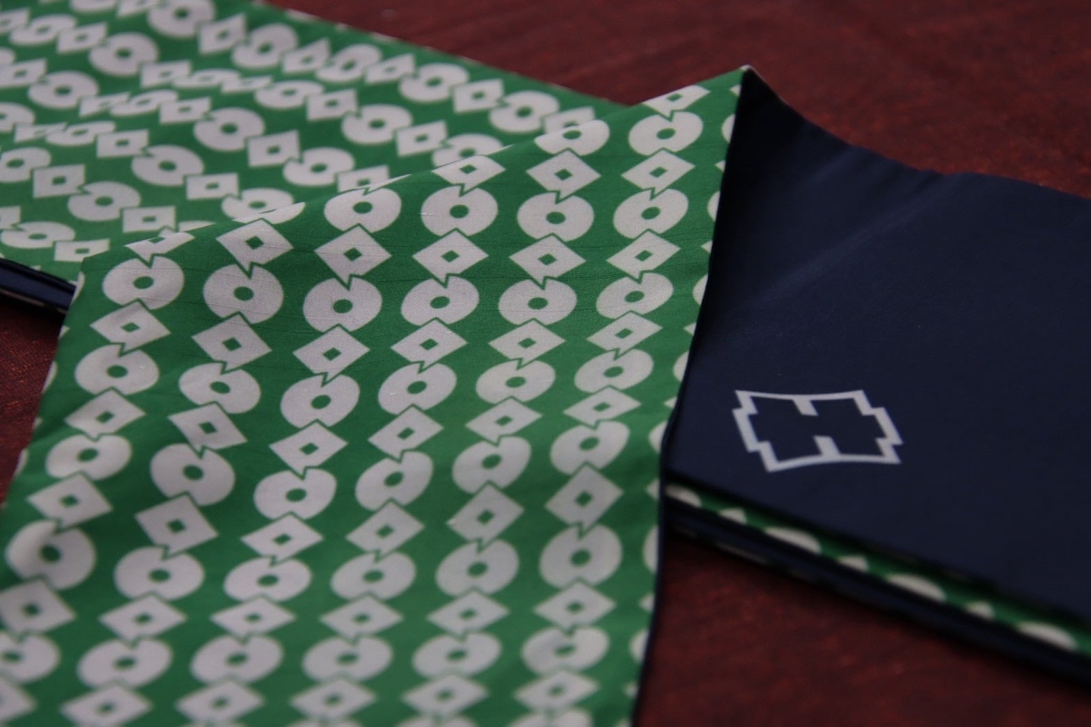 ポリ巻帯リバーシブル【つなぎ柄/緑色】× 【新柄/藍色】