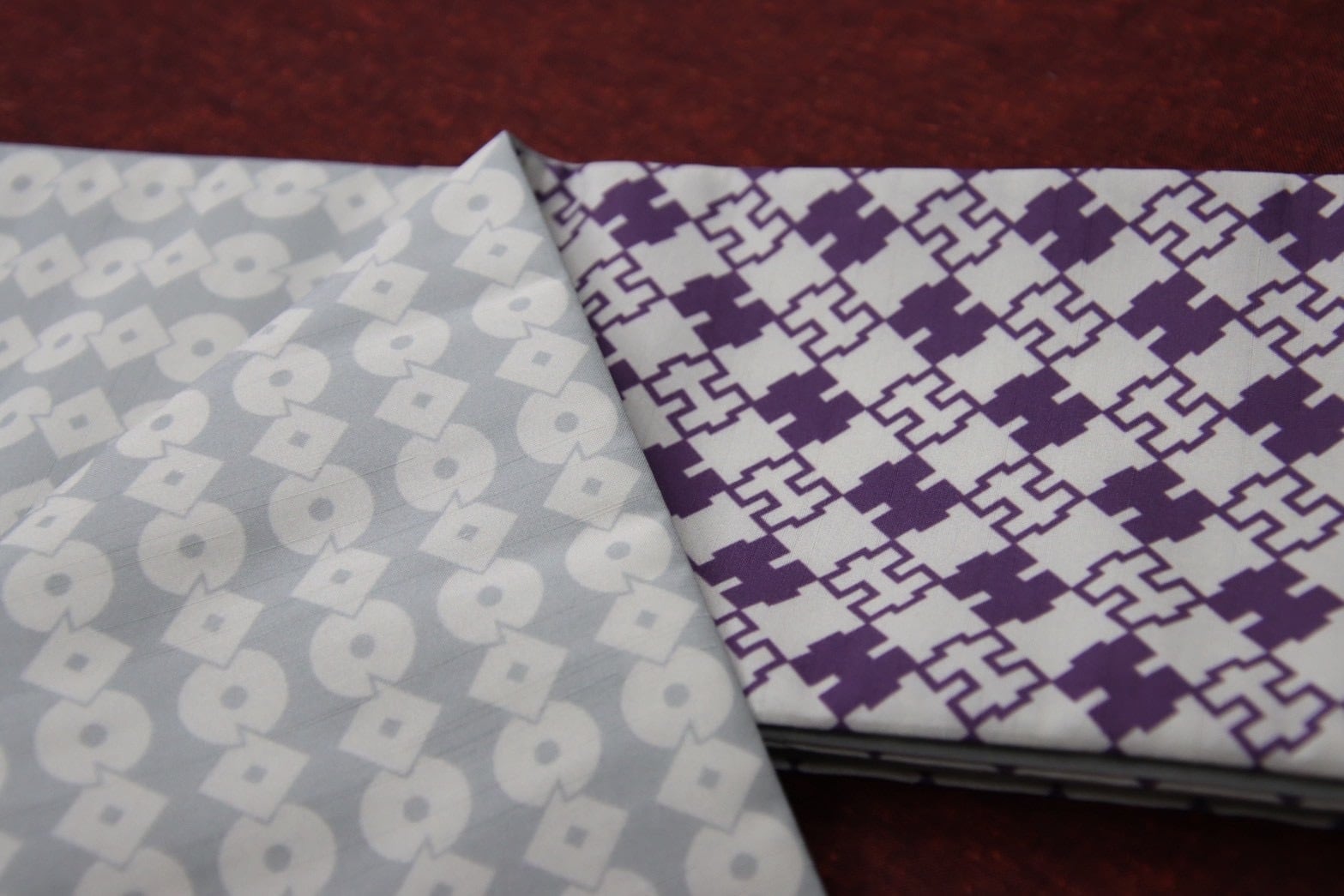 一点もの ポリ巻帯 リバーシブル巻き帯【キ柄/紫色】× 【つなぎ柄/灰色】