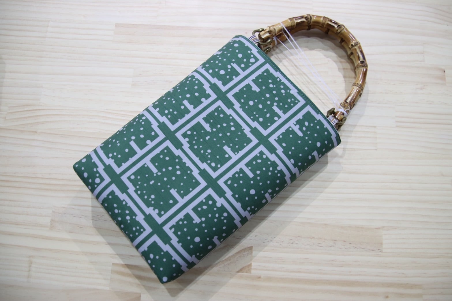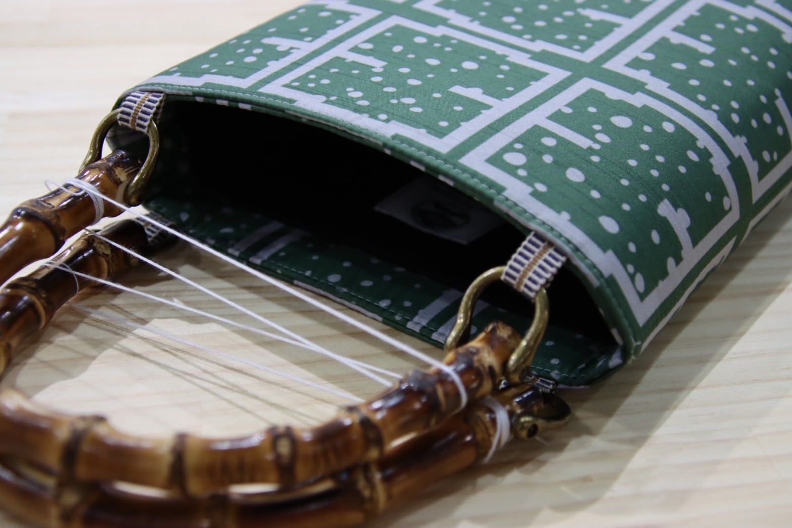 【紬 バンブーバッグ 緑 】