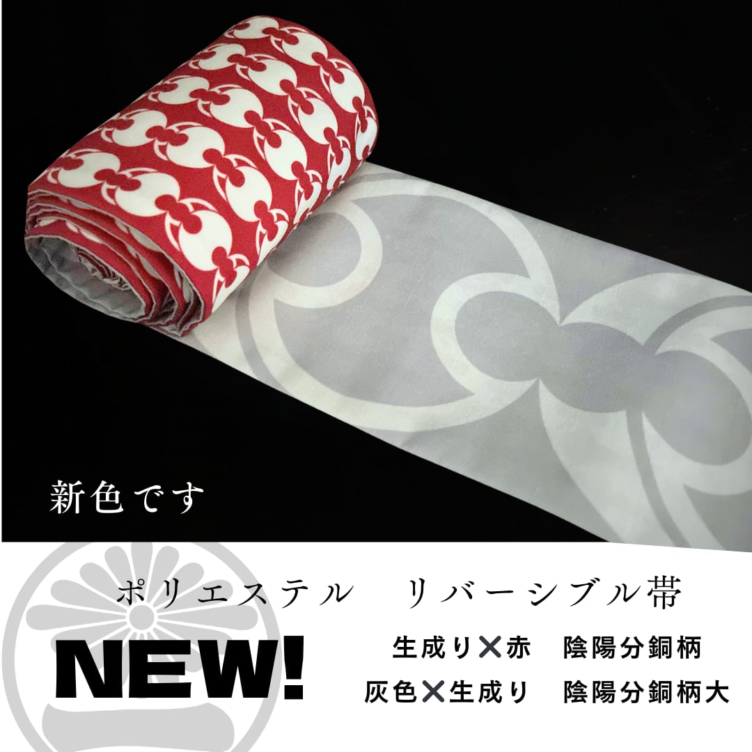 ポリ巻帯リバーシブル【陰陽分銅柄/赤】× 【大陰陽分銅柄/灰色】