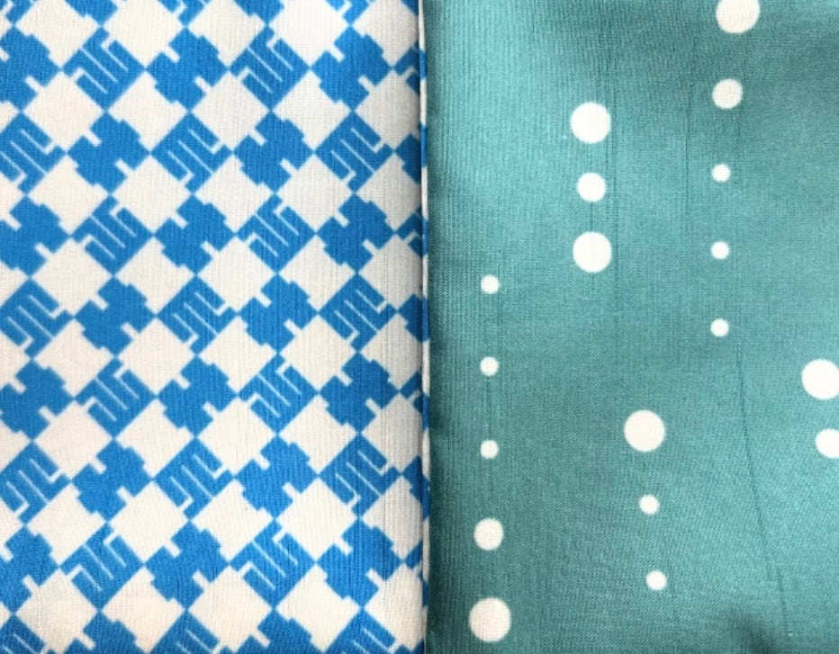 ポリ巻帯リバーシブル【豆柄/青色】× 【大小雨霰柄/新橋色】